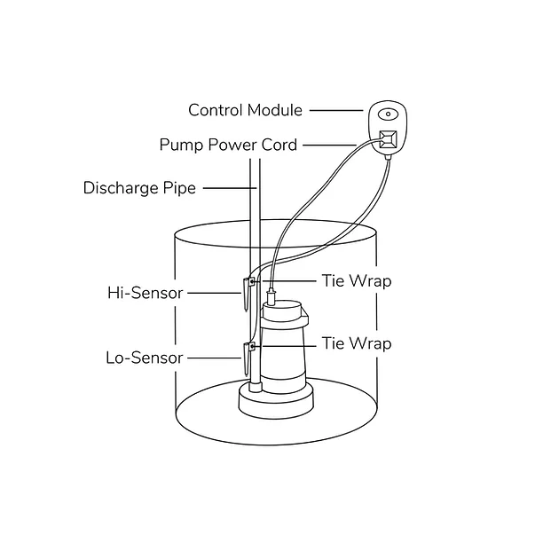 The placement of the sensors determine when the control module turns the pump on, and when it turns the pump off. Following the sequence below, the operation is as follows:
